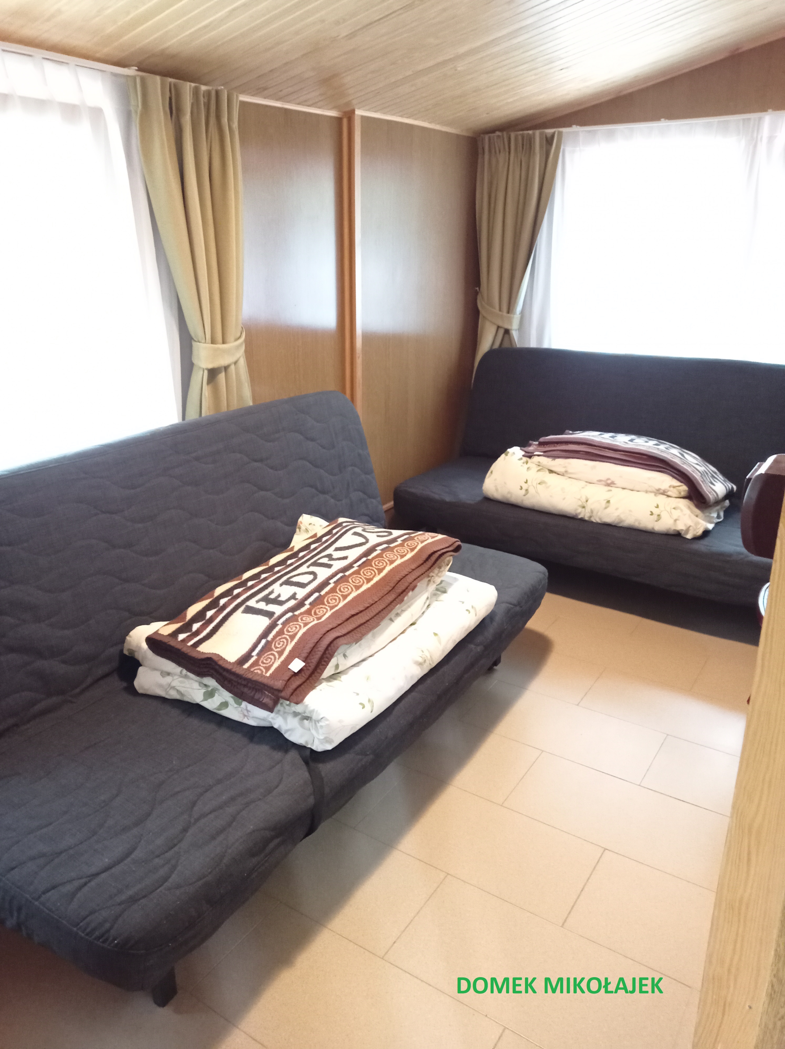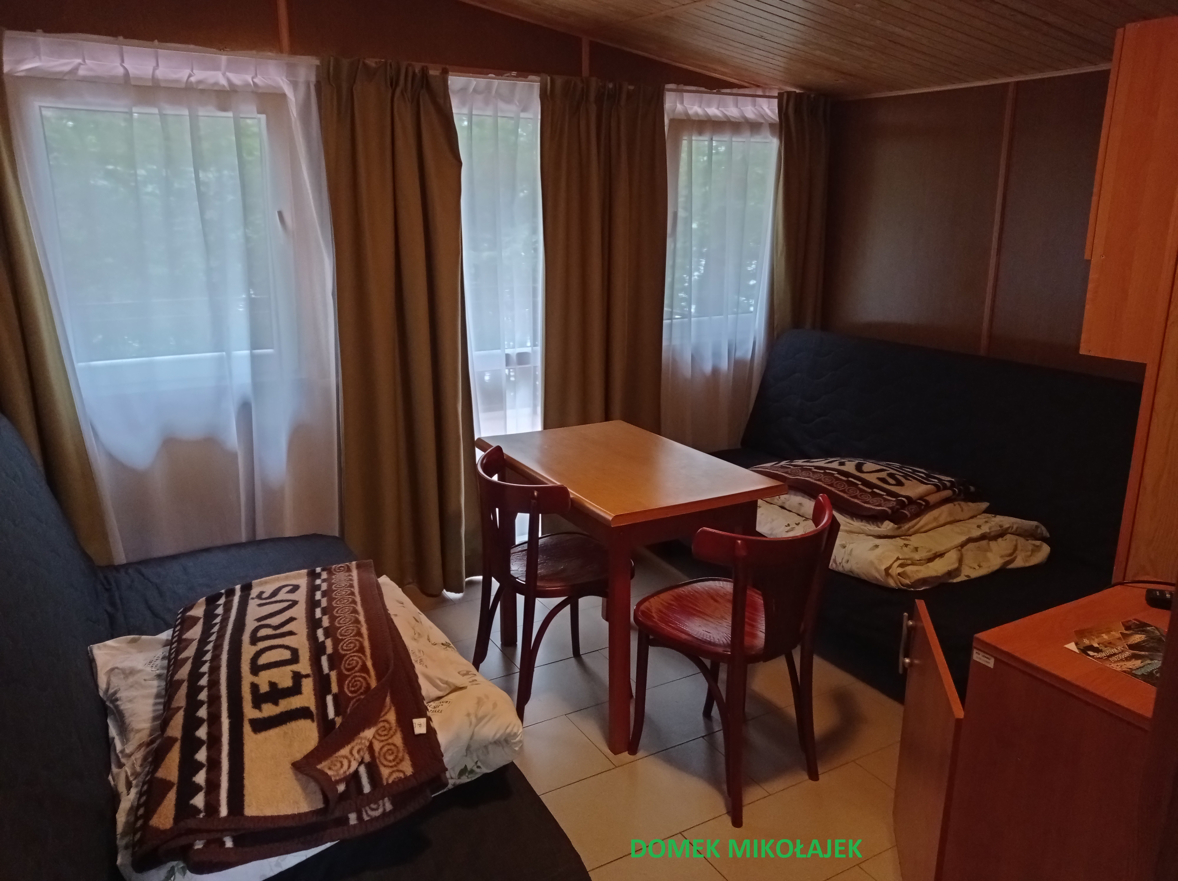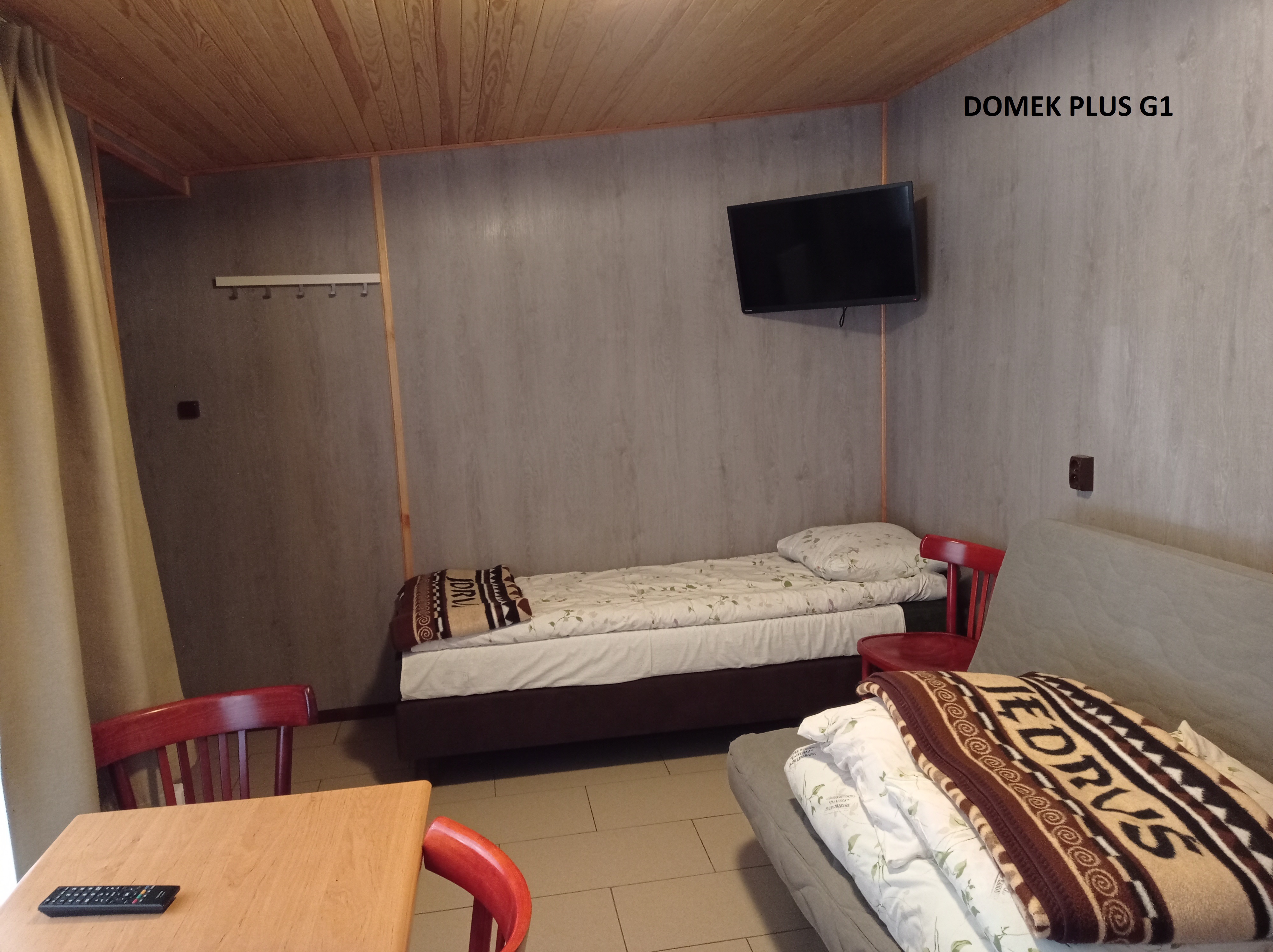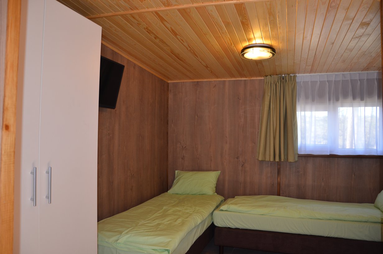 Po całkowitym remoncie. Składają się z jednego przestronnego pokoju. W obiekcie znajduje się wersalka, dwa pojedyncze łóżka, szafa ubraniowa, stolik z krzesłami, lodówka oraz telewizor LCD. Na wyposażeniu jest także toaleta z prysznicem.